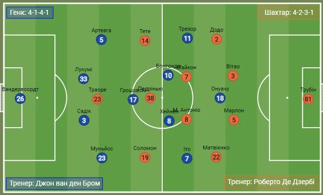 Генк: Вандервоордт – Муньйос, Садік, Лукумі, Артеага – Хейнен, Грошовскі (Ейтінг, 83) – Іто, Трезор (Торстведт, 67), Бонгонда – Онуачу (Дессерс, 82)