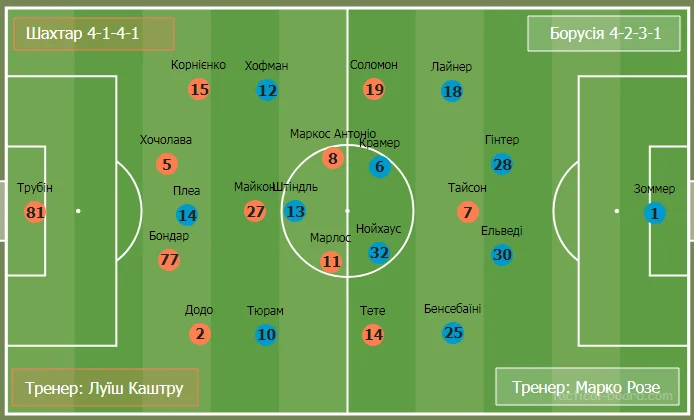 Мабуть, відпочинок у 8 турі УПЛ негативно вплинув на цей склад Шахтаря. "Гірники" надали паузу більшості гравців, які стабільно виходять у Лізі чемпіонів, до того ж грали з недосвідченими юнаками у п'ятницю, а Борусія у суботу робочим складом, з проявом невеликої ротації, провела складний матч із РБ Лейпциг.
