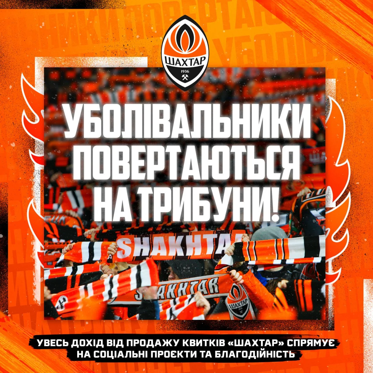 Шахтар на своєму сайті оголосив, що проводитиме домашні матчі за підтримки уболівальників. Команда гратиме на Арені Львів і зможе приймати близько 500 фанатів – весь дохід від продажу квитків буде спрямовано на соціальні проекти та благодійність.