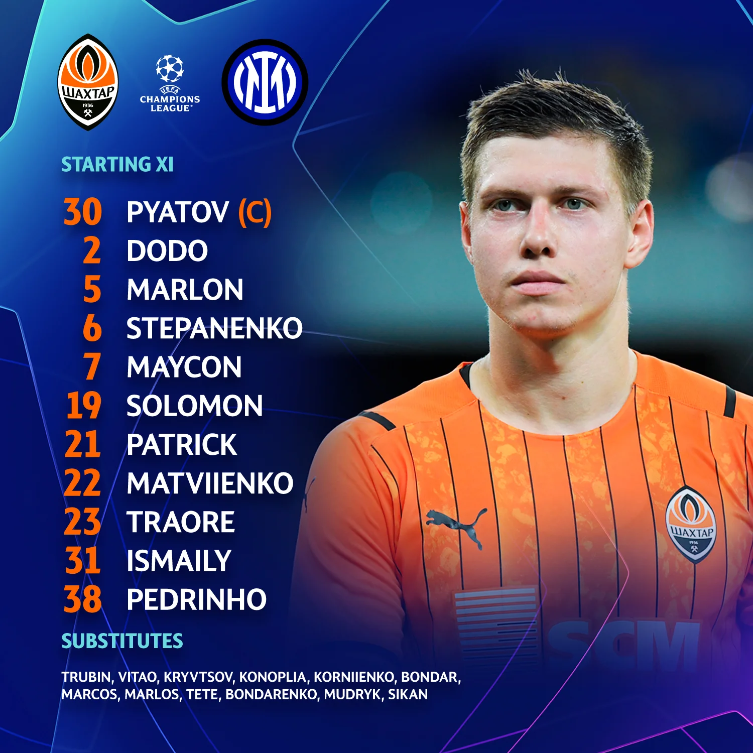 Шахтар: Пятов (к) – Додо, Марлон, Матвієнко, Ісмаїлі – Майкон, Степаненко – Педрінью, Патрік, Соломон – Траоре