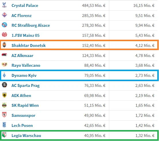 Загальна й середня вартість складу команд Ліги конференцій