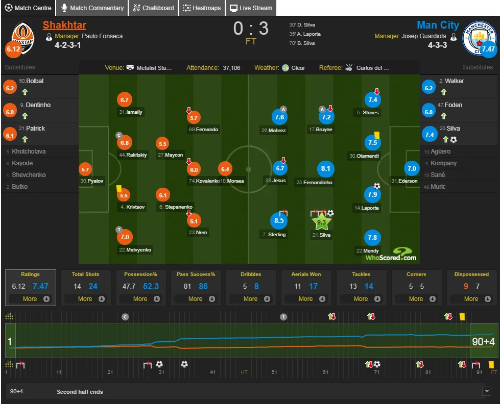 Шахтар – Манчестер Сіті: Сілва став найкращим гравцем матчу, Кривцов і Майкон – найгірші