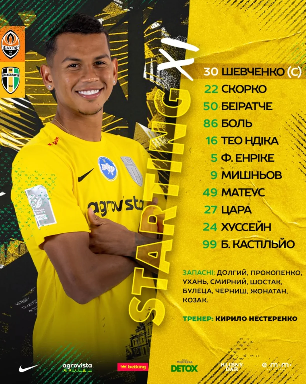 Олександрія: Шевченко, Скорко, Боль, Беіратче, Матам, Матеус, Енріке, Мишньов, Хуссейн, Кастільйо, Цара.