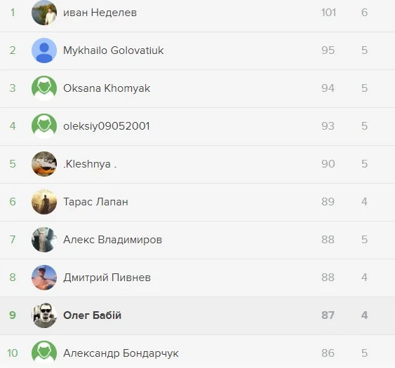 Другу сходинку посів Mykhailo Golovatiuk, який відстав від переможця на 6 очок. Пан Михайло – один із головних ветеранів нашого багаторічного конкурсу. Станом на сьогодні він встиг зробити прогноз понад 52360 матчів! Цю цифру навіть неможливо осягнути!