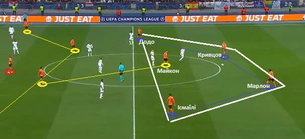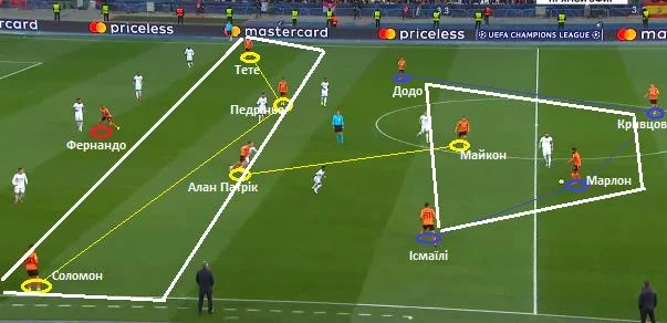 На скріншоті нижче можна побачити повну картину структури Шахтаря у другій фазі позиційної атаки.