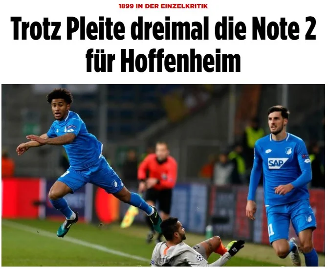 ТШГ відігрався з ранніх 0:2, продемонструвавши неймовірний моральний дух. Навіть у меншості переважав суперника за кількістю моментів. Хоффенхайм не реалізував кращі шанси, а в додатковий час ще й потрапив під останню разючу гольову атаку – 2:3", – додає Bild, виставляючи оцінки гравцям і тренеру своєї команди.