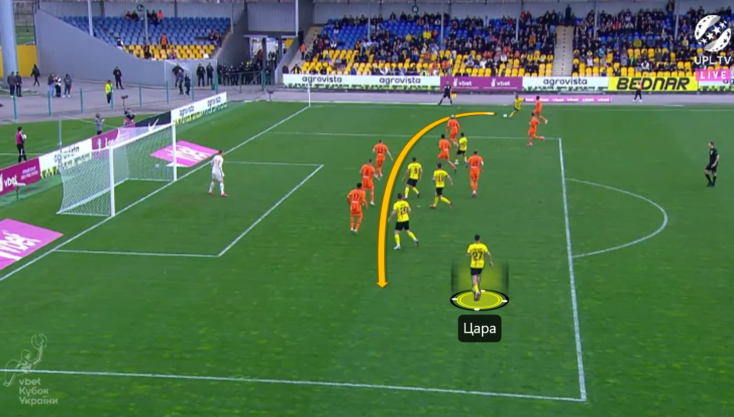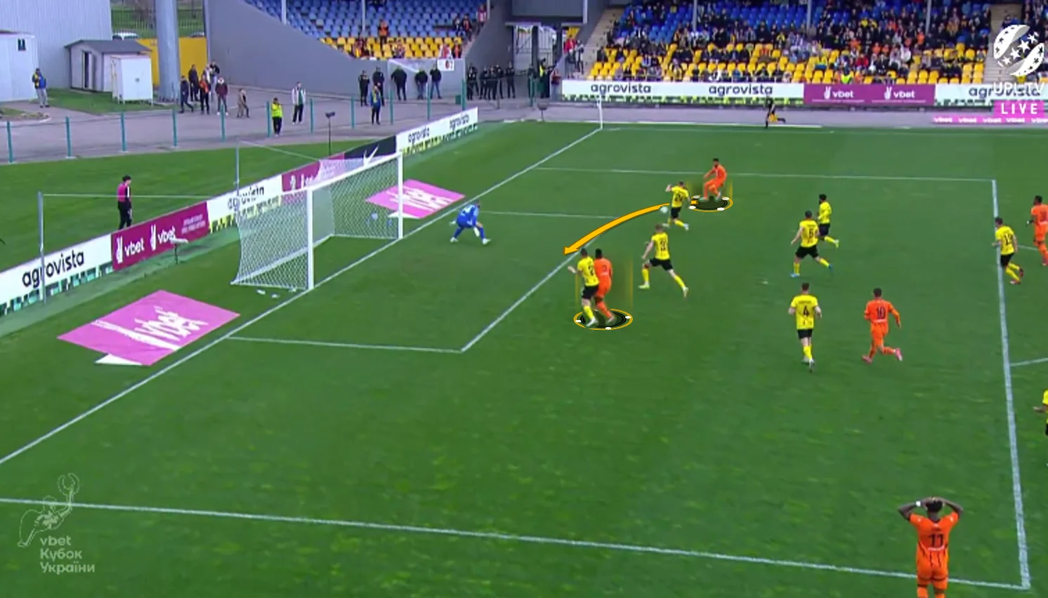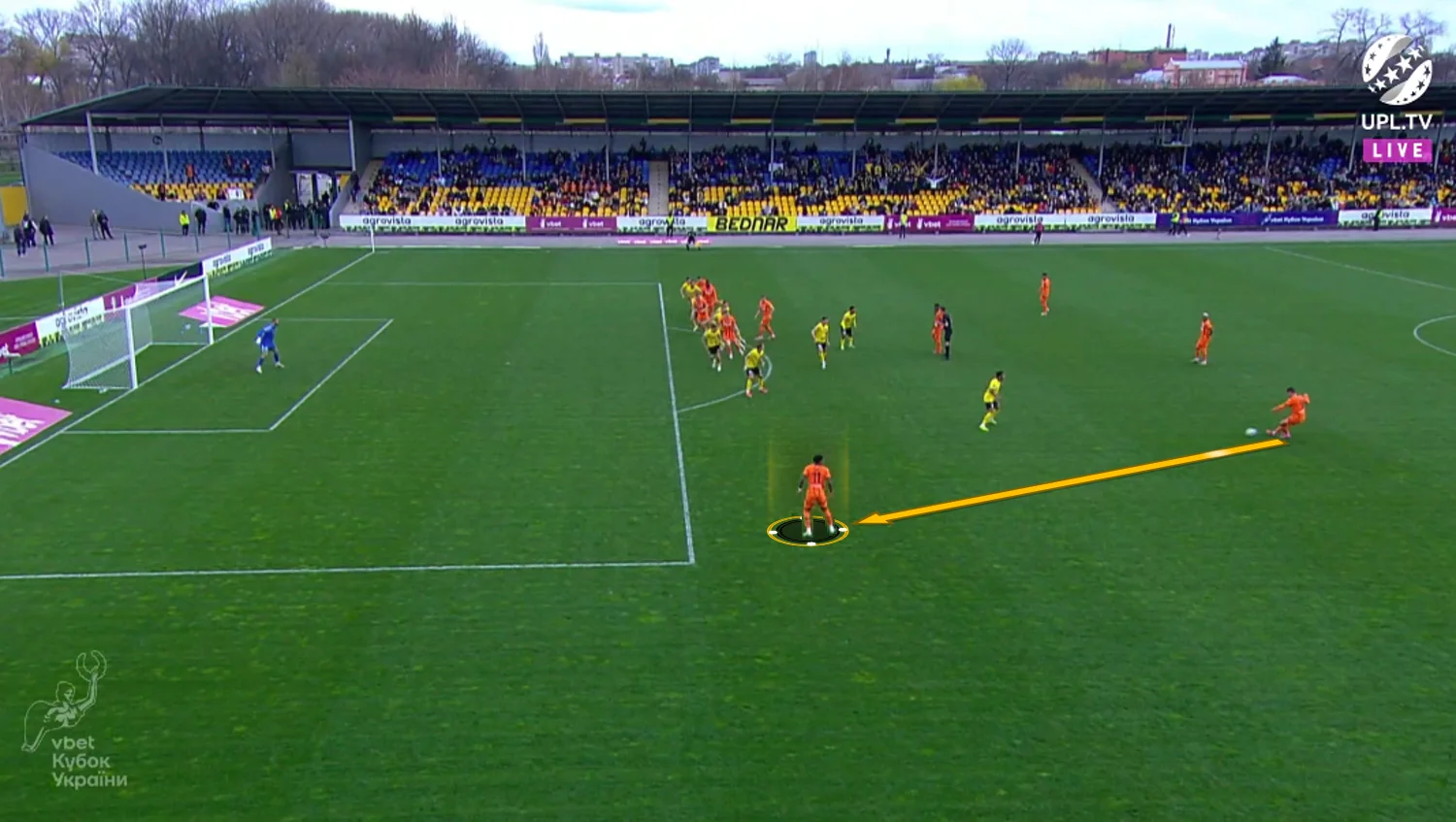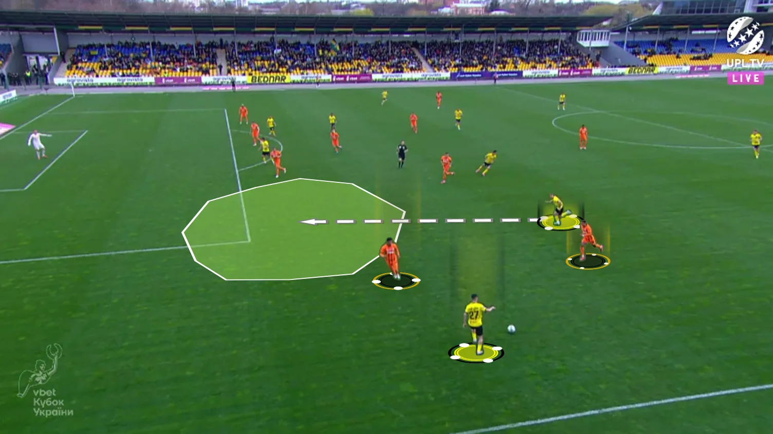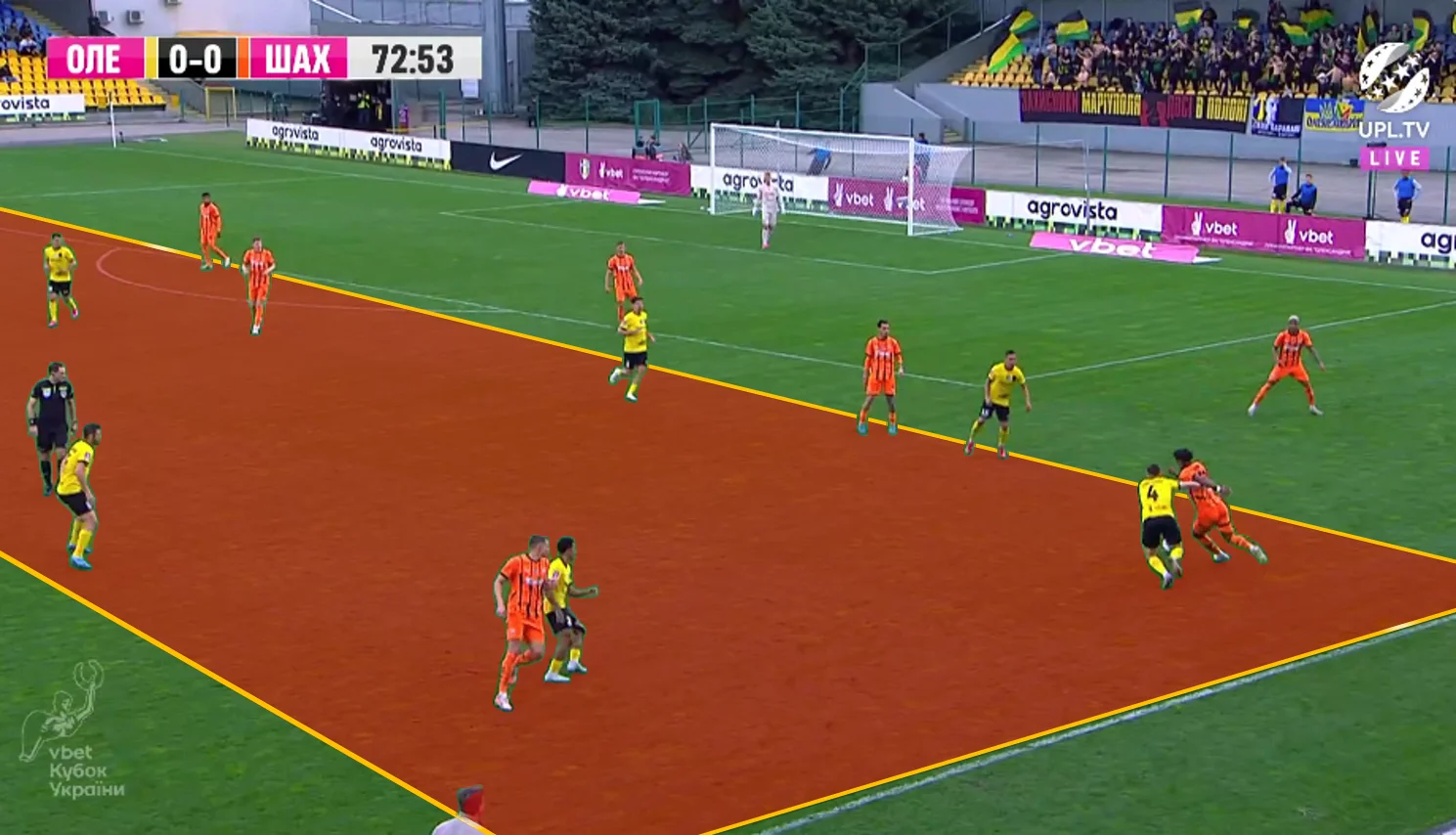 Повторювати цю помилку "містяни" не стали. У першому таймі Олександрія зробила ставку на агресивний футбол. "Жовто-чорні" працювали за класичними шаблонами – з високою інтенсивністю у середньому блоці, з проактивністю (тобто з висмикуванням із лінії й грою на випередження) та з короткими розіграшами у білд-апі (при активній ролі голкіпера).