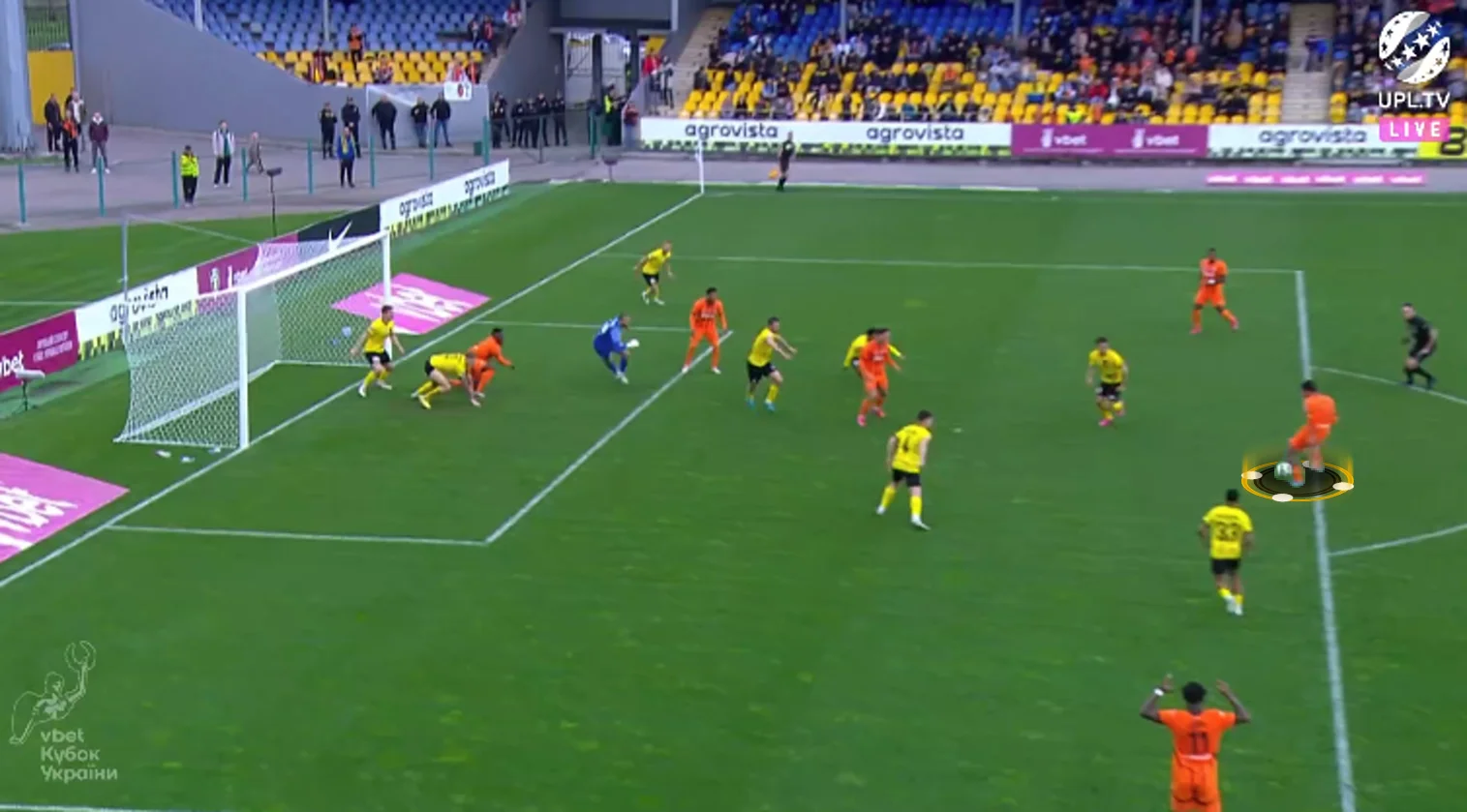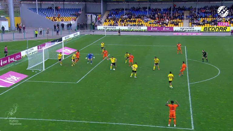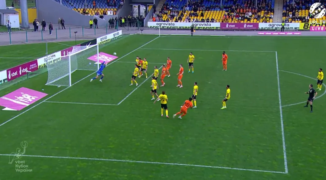 Сам розіграш стандарту завершився ударом в обличчя Кевіну, але другу фаза цього епізоду завершилась дальнім пострілом Калюжного повз праву стійку.