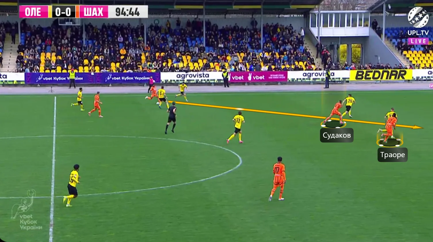 Вже на 95-й хвилині Судаков шикарно пропустив передачу Кевіна на хід Траоре, організувавши нападник вихід віч-на-віч. Лассіна завершував ударом, однак Єрмаков парирував.