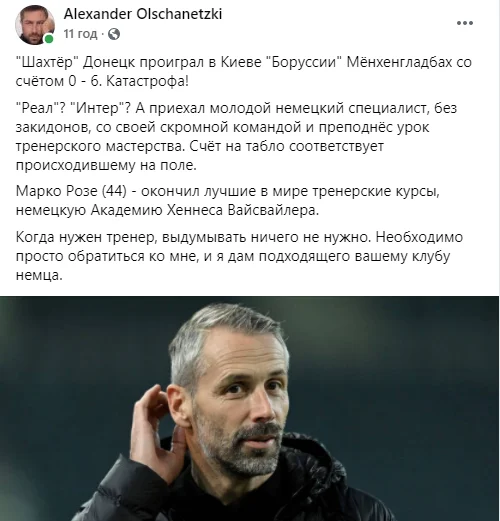 Футбольний менеджер Олександр Ольшанецький у захваті від наставника Борусії М і пропонує свої послуги.