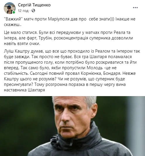 Головний редактор журналу Футбол Артем Франков – навпаки – шкодує Луїша Каштру.