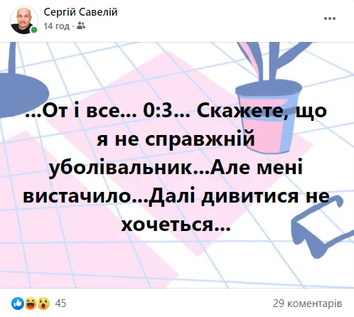 Одним із перших не витримав побиття патріарх українського коментаторського ремесла Сергій Савелій.