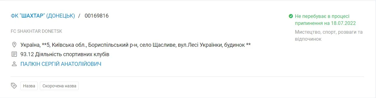 Донецький клуб вніс зміни до Єдиного державного реєстру стосовно місця реєстрації "гірників".