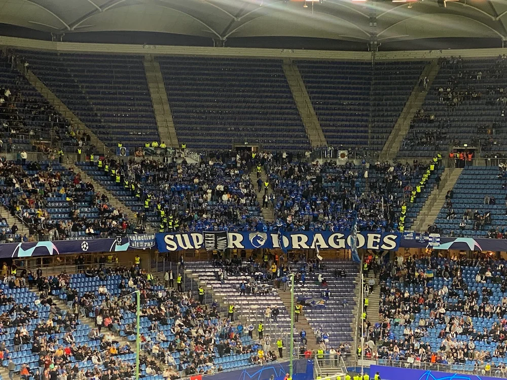Фолькспаркштадіон шокував розмірами одразу, але це й не дивно, адже матч відвідало 46729 уболівальників. З них, офіційно 1000 осіб приїхали з Порту, щоб підтримати свою команду. Однак і Шахтар відчув дух рідних фанів, які щоразу аплодували, коли "гірники" виконували штрафний удар або ж кутовий.