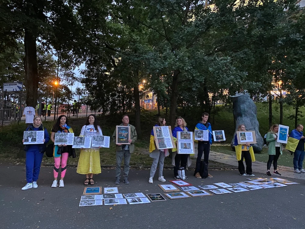 Перед поєдинком організація влаштувала акцію в знак подяки німцям за танки Leopard та нагадала, що Україні потрібні ракети Taurus. Також жінки роздрукували фото із загиблими під час війни українськими спортсменами, розповідають, як саме це сталося.