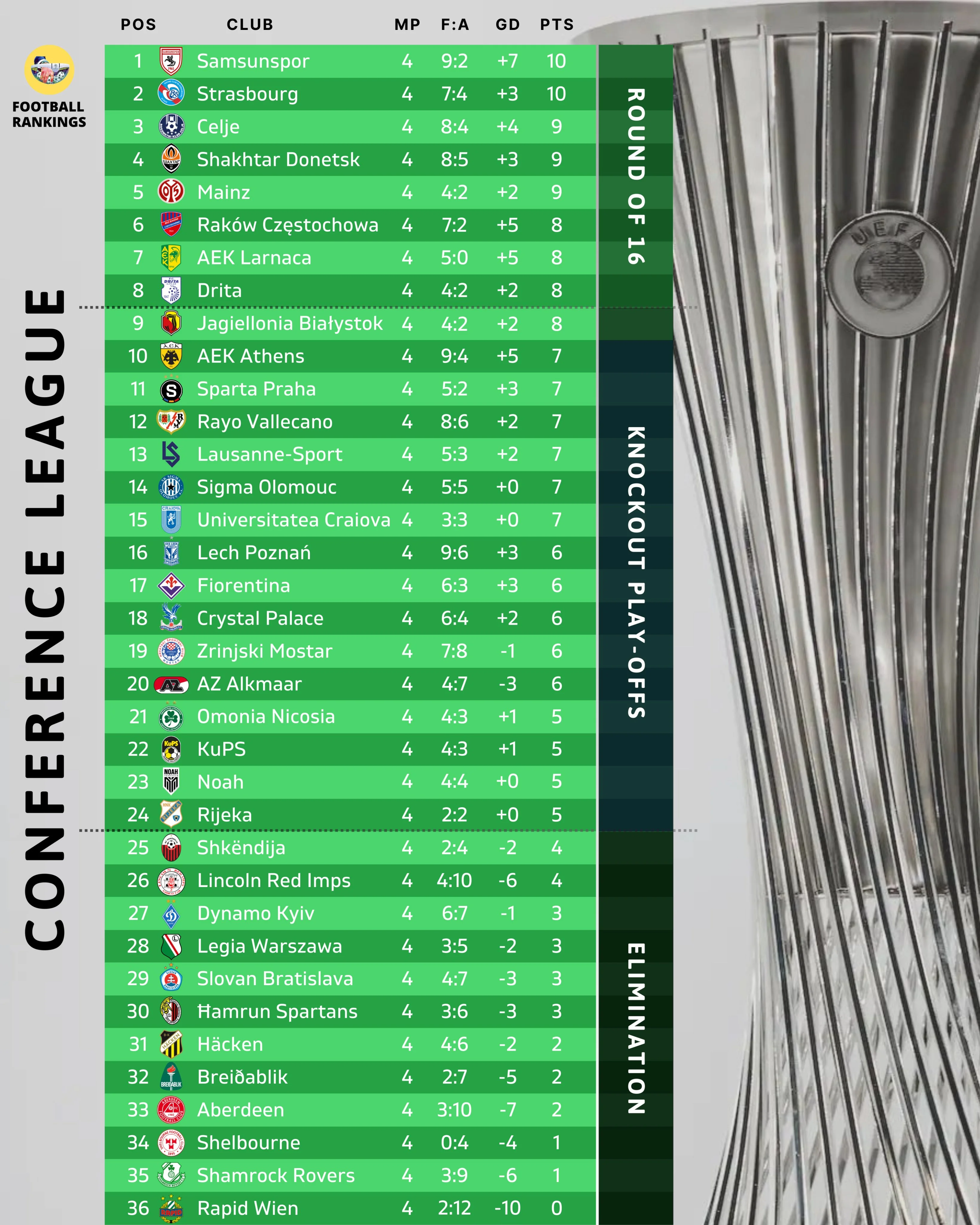 Вісім очок виявилося достатньо, щоб майже гарантувати собі участь у плей-офф Ліги конференцій. Це означає, що Цельє, Шахтар, Майнц, Ракув, АЕК (Ларнака), Дрита і Ягеллонія опустяться нижче 24-го місця в турнірній таблиці Ліги Європи лише за фантастичних обставин.