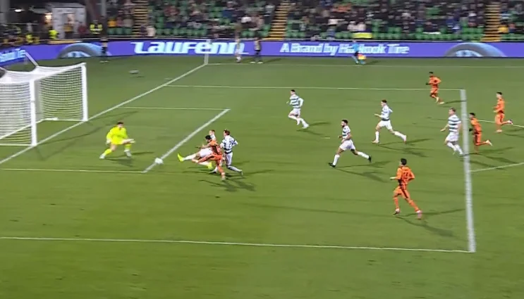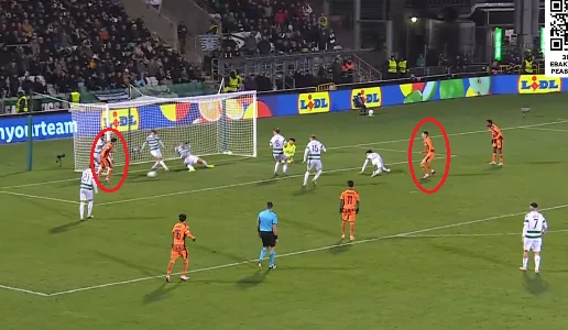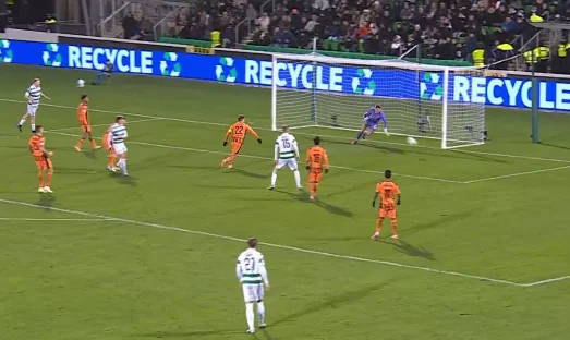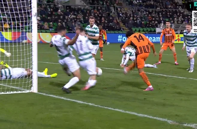 От тільки розгрому не сталося, адже після втручання VAR було зафіксовано офсайд. Замість цього донеччани отримали головний біль: на 87-й хвилині Шемрок провів атаку правим флангом із проникним пасом на Меллі – а той з правого краю штрафного перекинув Фесюна, влучивши під ліву стійку. 1:2!