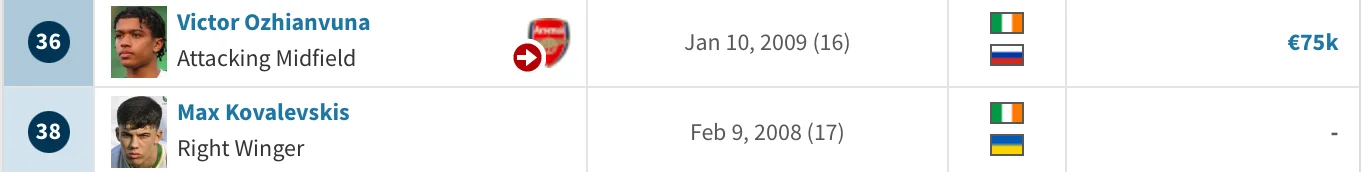 При перегляді складу Шемрок Роверс неможливо не помітити двох молодих гравців: 16-річного Віктора Ожианвуна та 17-річного Макса Ковалевскіса. Обидва – ірландці, але мають подвійне громадянство: Віктор – російське, Макс – українське. Вони є вихованцями Шемрока і, що цікаво, Віктор уже підписав попередній контракт із Арсеналом U-21, куди вирушить у 2027 році. Цього сезону обидва випускались на поле в різних турнірах, окрім єврокубків, але все ж тренер віддавав більше шансів саме Ожианвуні.