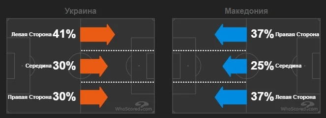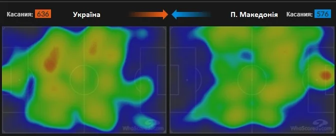 У першому таймі Україна мала тотальну перевагу практично в усіх компонентах гри. Загальна статистика не відображає розкладу сил на полі до перерви. "Синьо-жовті" за рахунок інтенсивного тиску на суперника просто знищували його оборонну структуру. Рахунок тайму – 2:0 був не найгіршим варіантом для Македонії.