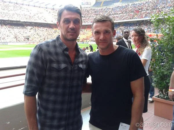 На "Сан-Сіро" Шевченко з'явився в компанії іншої легенди "россонері" - Паоло Мальдіні.