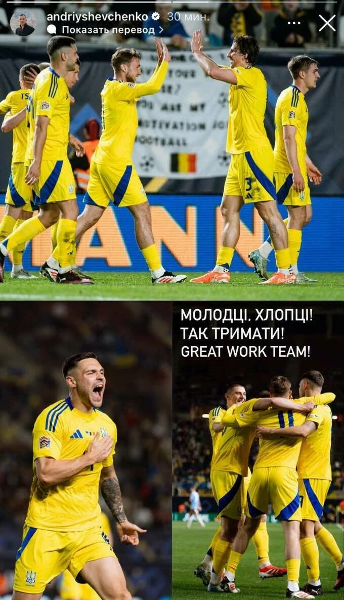 Президент УАФ Андрій Шевченко оцінив подвиг нашої команди, лаконічно відреагувавши на перемогу у своєму Instagram: "Молодці, хлопці. Так тримати. Чудова робота, командо".