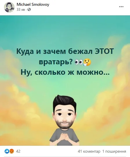 Блогер Михайло Смоловой також бідкається через фатальний вихід 19-річного кіпера Шахтаря.