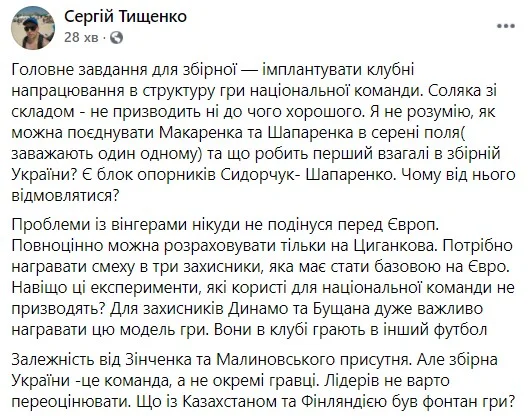 Автор Футбол 24 і Gazeta.ua Сергій Тищенко сумнівається в експериментах Шевченка. Ці рядки не сподобаються Євгену Макаренку.
