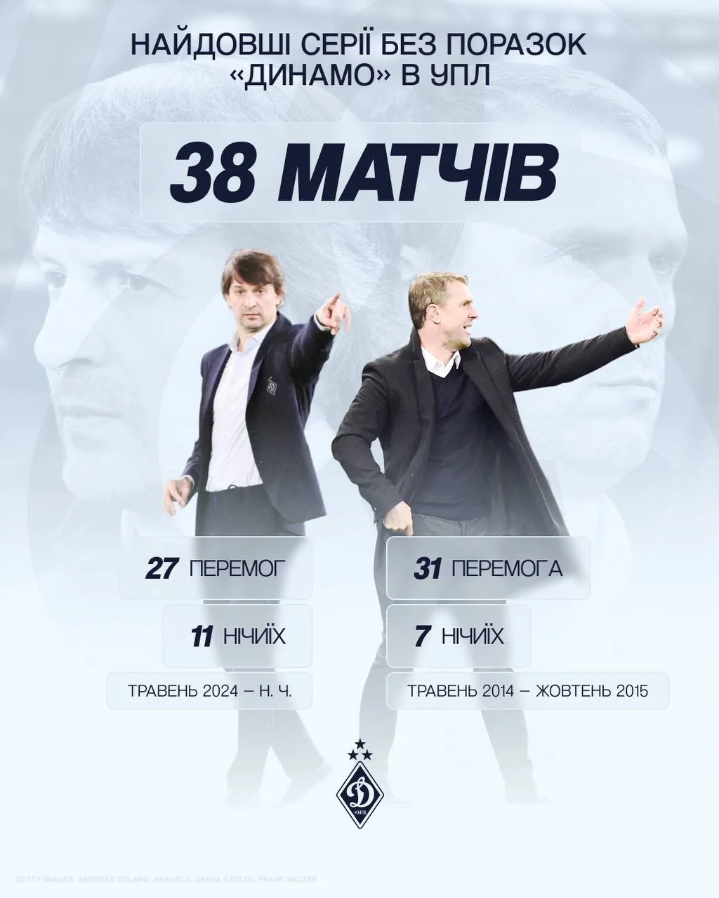 Річ у тім, що Динамо не програє в чемпіонаті України 38 матчів. "Біло-сині" здобули 27 перемог та 11 разів зіграли внічию. Це є клубний рекорд, який кияни встановили ще за часів Сергія Реброва (31 перемога та 7 нічийних результатів).