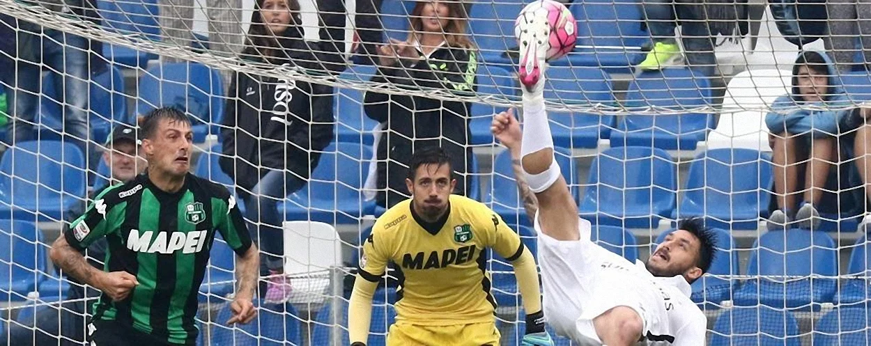 Сначала Сансоне не реализовал пенальти (Спортьелло потянул), а через несколько минут после промаха Николы пришло наказания. Это Пинилья своим фирменным божественным ударом через себя поразил цель хозяев. В ответ капитан "Сассуоло" Маньянелли мощным ударом по дуге отправил мяч в девятку ворот. Пинилья снова вывел "Аталанту" вперед, однако еще до перерыва "нероверди" отыгрались.