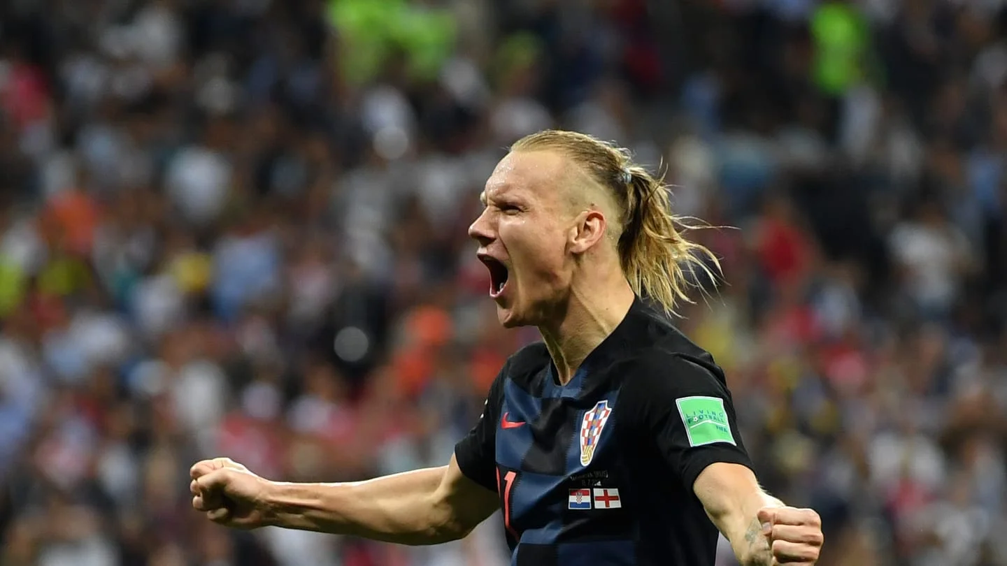 Домагой Вида празднует успех сборной Хорватии в игре с англичанами