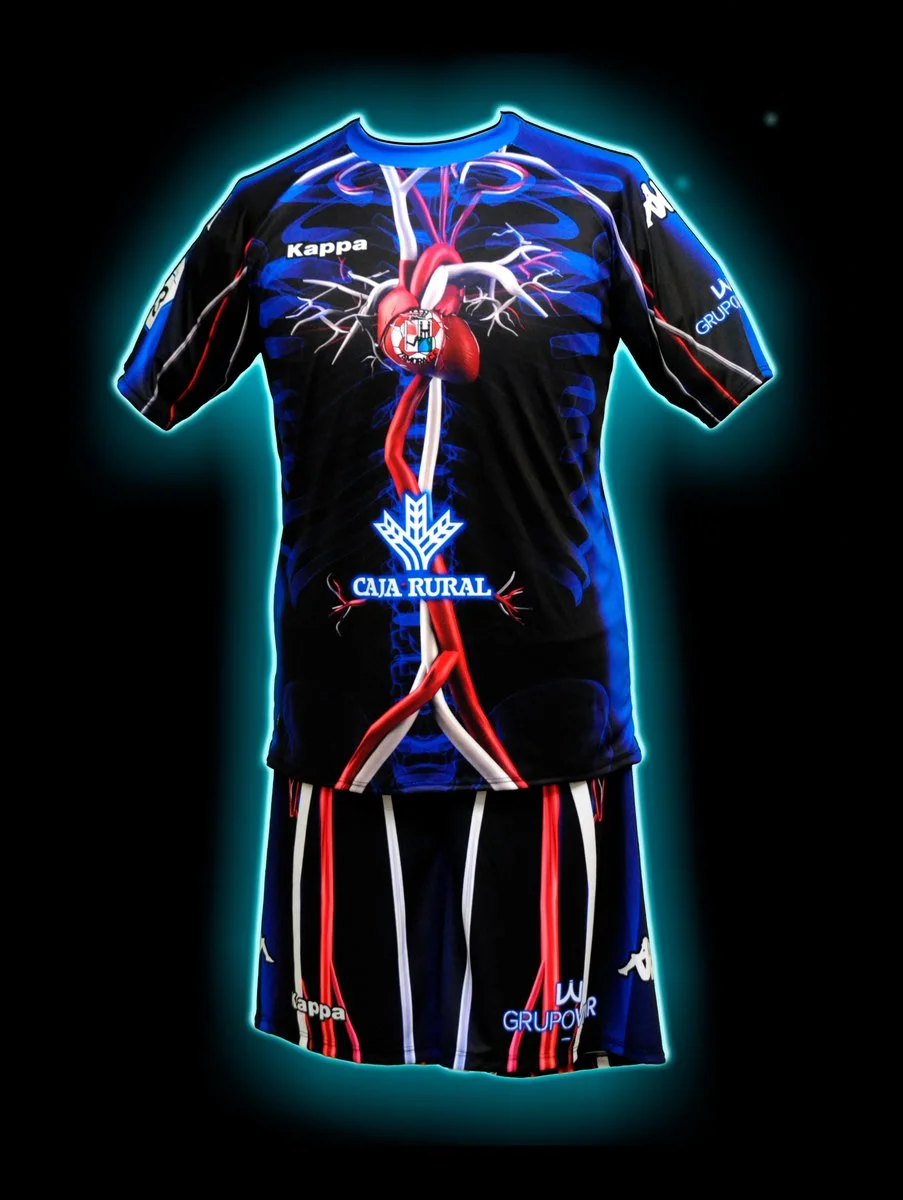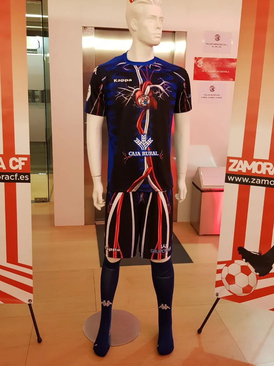 На третьем комплекте формы ФК Самора от технического спонсора Kappa изображена кровеносная система человека, а в самом центре футболки нанесено изображение сердца.