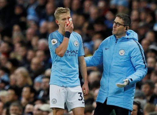 Врачи долго пытались остановить кровотечение. Главный тренер Манчестер Сити решил, что нужно заменить украинца, который покинул поле окровавленным.