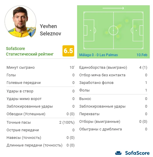 Статистика Селезнева в матче с Лас-Пальмас после выхода на замену