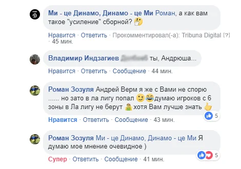 "Не переживай, меня туда не протащат... Мне нужно паспорт поменять на бразильский. Как мне такое "усиление" сборной? Думаю мое мнение очевидно. Но зато в Ла Лигу попал. Думаю, игроков из 6 зоны в Ла Лигу не берут...", – написал Зозуля в комментариях в динамовском паблике Tribuna.com в Facebook.