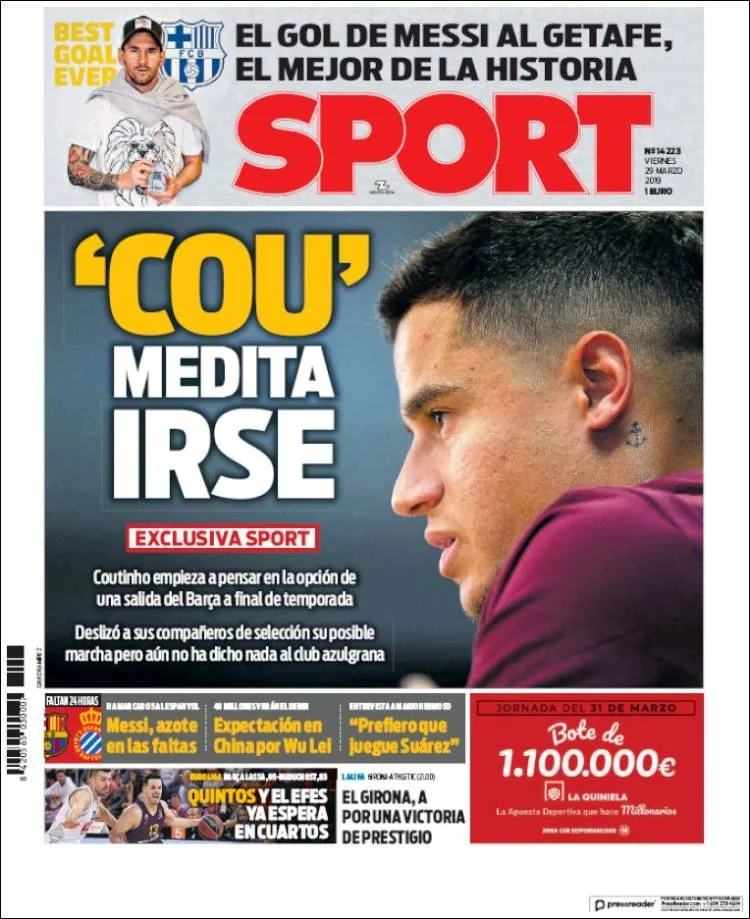 Обложка свежего номера испанской газеты Sport