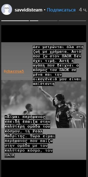 Сын одиозного владельца клуба Ивана Саввиди раскритиковал решение Шахова и Варелы, запостив в Instagram слова бывшего игрока Реала и ПАОКа Пабло Гарсии. "Я не считаю все в жизни деньгами, моя любовь к ПАОКу бесценна", – процитировал Джордж Саввиди.