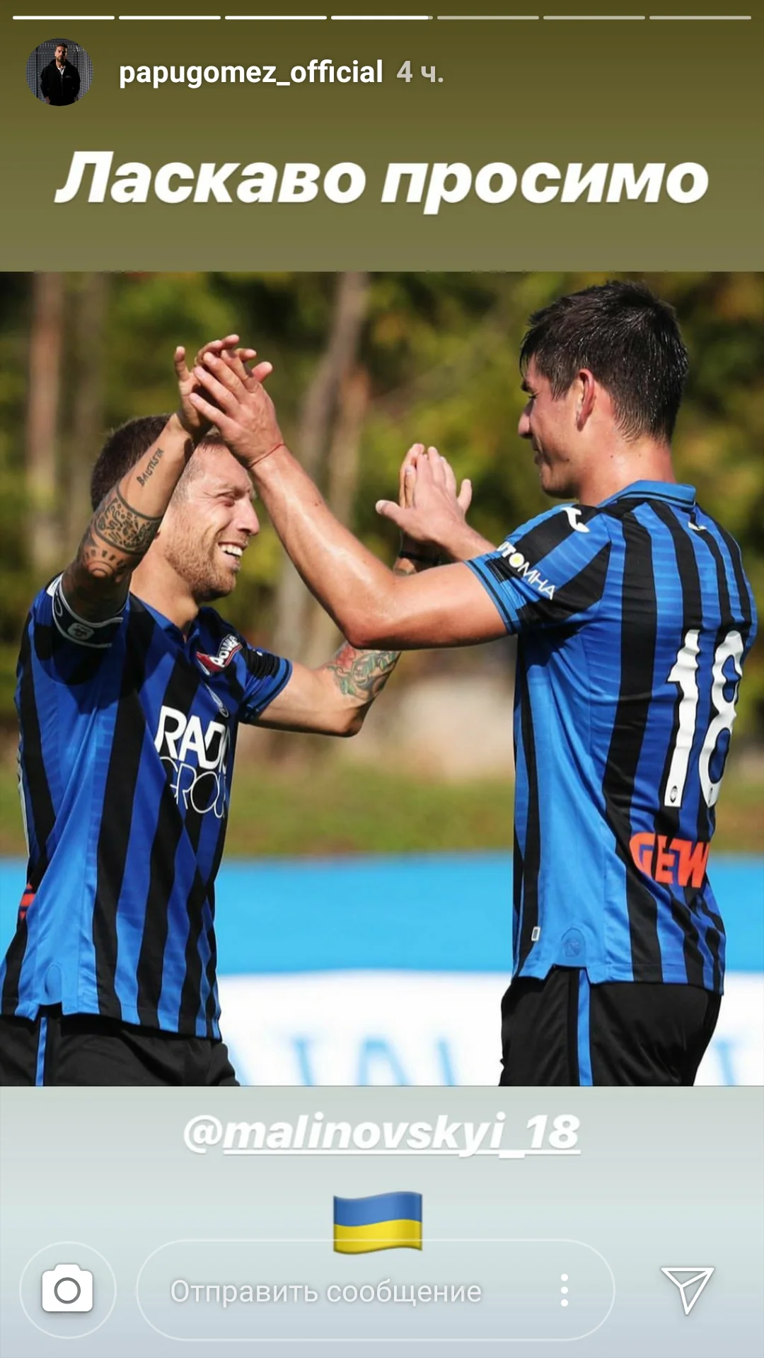 "Ласкаво просимо", – капитан Аталанты Гомес на украинском поздравил Малиновского в новом клубе