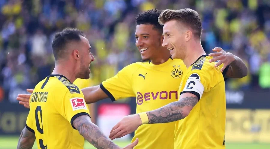 Боруссия: Бурки, Ашраф, Аканджи, Хуммельс, Геррейро, Дилейни, Витсель, Санчо, Ройс, Брандт, Алькасер