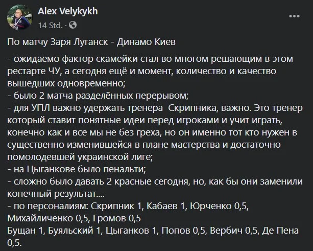 Известный скаут Алекс Великих сделал экспресс-анализ матча Заря – Динамо. Он считает, что решающим стало качество киевской скамейки запасных, но при этом хвалит Скрипника за понятные идеи и обучение футболистов.