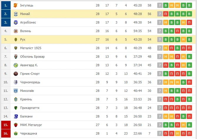 Первая лига: Рух одолел Минай в битве за УПЛ, победы Ингульца и Волыни, фиаско Металлиста 1925