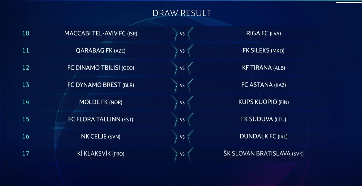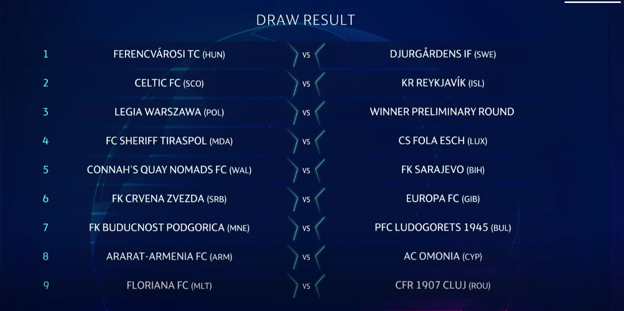 Сегодня в Ньоне состоялась жеребьевка первого раунда квалификации Лиги чемпионов 2020/21.
