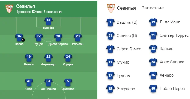 Севилья – Манчестер Юнайтед: стартовые составы на полуфинал Лиги Европы