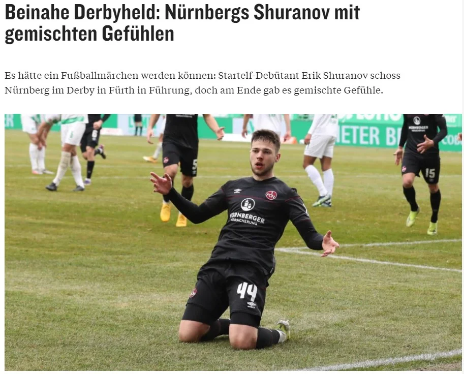 "Це могла б бути справжня казка: дебютант стартового складу Ерік Шуранов вивів Нюрнберг вперед, але в підсумку запанували змішані відчуття. Пропустивши швидкий гол, Нюрнберг оговтався, перехопив ініціативу та регулярно створював моменти. Відповідав за це 19-річний вихованець, який вперше вийшов в основі та дав атаці свіжу силу", – інформує Kicker.