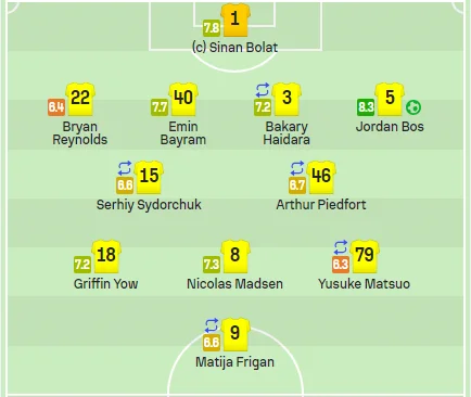 Ще до середин тайму гості вийшли вперед, а по перерві відзначився орендований у Севільї Томас Ділейні. Добив Вестерло наприкінці зустрічі не менш зірковий Каспер Дольберг. На останній хвилині господарі змогли розмочити рахунок, однак на більше не вистачило сил, майстерності і часу.