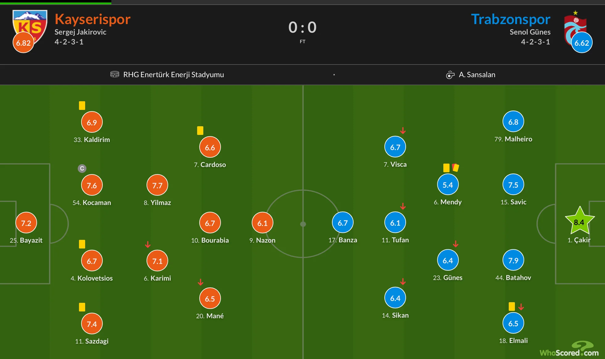 Дебют за гостей провів український нападник Данило Сікан, який нещодавно приєднався до турецької команди з Шахтаря. Форвард вийшов на поле з перших хвилин, але не зміг зробити результативних дій і був замінений на 60-й хвилині через пошкодження. Жоден з колективів не зміг відкрити рахунок. За цей поєдинок WhoScored поставив Данилу 6,4 бали, а Sofascore – 6,5.