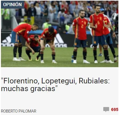 Крім цього, один з авторів видання Роберто Паломар звинувачує у провалі збірної Іспанії Хулена Лопетегі, президента Реала Флорентіно Переса та нового очільника Федерації футболу Луїса Рубіалеса. Перші двоє, на думку журналіста, не повинні були оголошувати про перехід екс-наставника "Ла Рохи" на роботу в мадридський гранд за два дні до старту чемпіонату, адже тим самим зірвали підготовку національної команди. Натомість Рубіалес сильно погарячкував, викинувши Лопетегі зі збірної та позбавивши "Фурію" лідера, відзначає Паломар.