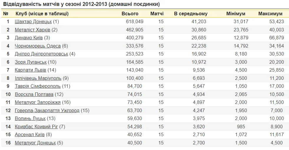 Протягом 2011-2014 років тільки Шахтар і Металіст в середньому заповнювали стадіон на 70+ відсотків. Показник Говерли на піку досягав 42%.