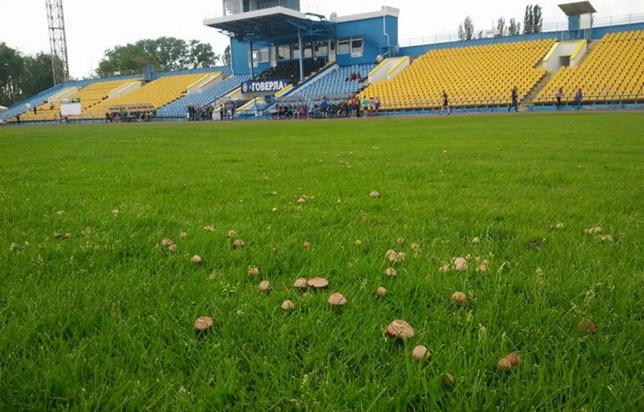 Менеджер, який ставив на 70% відвідуваності стадіону, допустив вирощування грибів прямо на газоні "Авангарду". Нормальних таких грибів. Та і трава явно не кошена.
