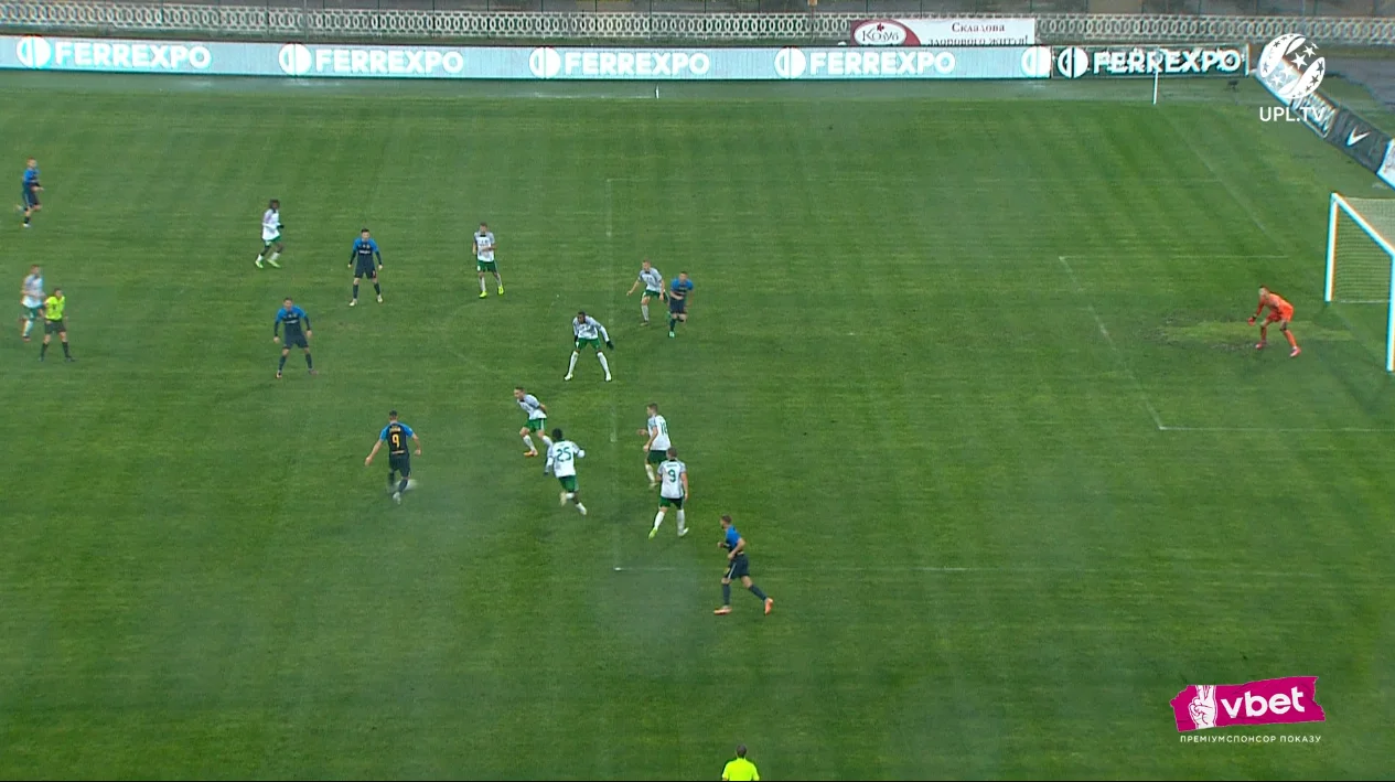 Ібрагім закрутив точно в дальню дев'ятку, змусивши Кінарейкіна виконувати фантастичний сейв. Щоправда, подальший кутовий ледь не завершився привозом Якова, а вже на 40-й хвилині йому таки довелося виймати м'яч із сітки. Господарі розкатали контратаку, в завершенні якої Крупський прийняв передачу від Кане й подав з правого флангу – Степанюк же замкнув головою. 1:1!