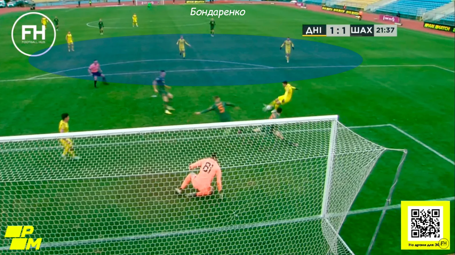 А от допускати тотальний розвал оборони у власному штрафному, як при першому голі СК Дніпра-1, команда рівня ЛЧ не має права. І мова не тільки про забуті зони завершення – ви тільки погляньте, який шалений розрив утворився перед штрафним! Туди встигли зайти одразу три гравці у жовто-чорних футболках, готових прийняти пас або опинитись на добиванні.